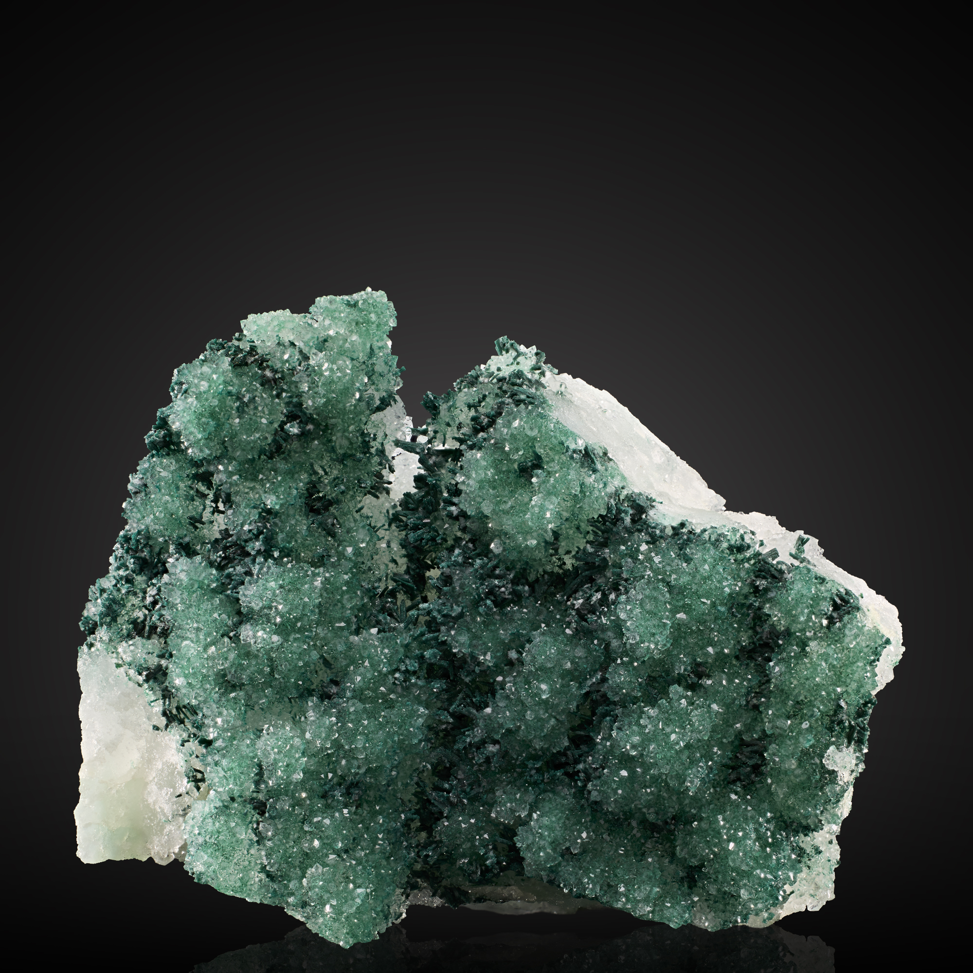 A lovely combo of atacamite and quartz from Peru’s Lily mine. This mine is known for its aesthetic combos of copper minerals with quartz and/or gypsum. Classic!