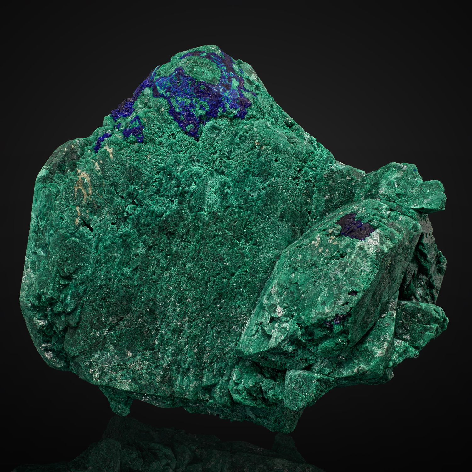 A highly representative and classic pseudomorph of malachite after azurite from Tsumeb. A sharp example with numerous terminated crystals. Nice!