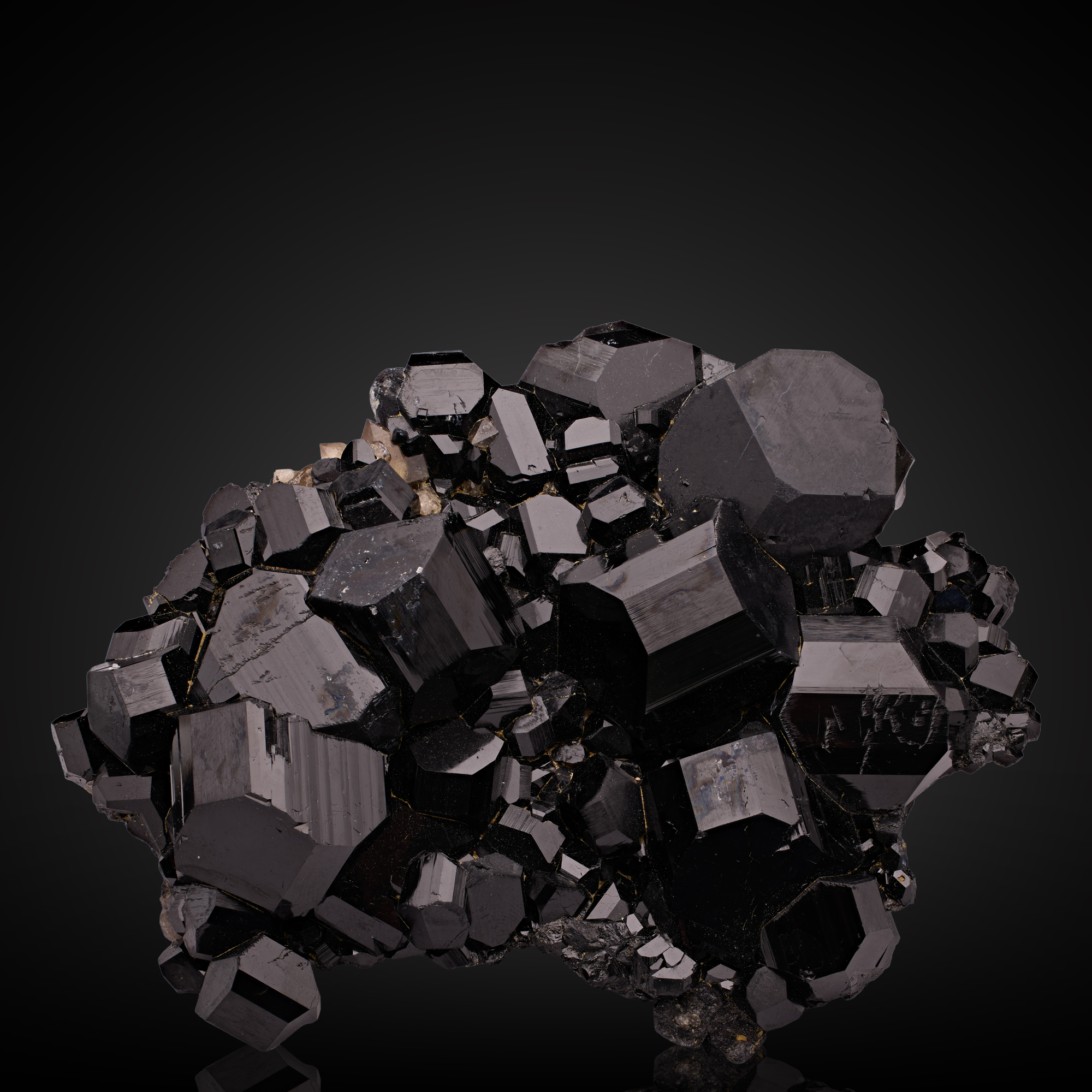 A classic Erongo schorl featuring a plate of several DT lustrous crystals. Some light periphery damage – but overall, a very nice large example!