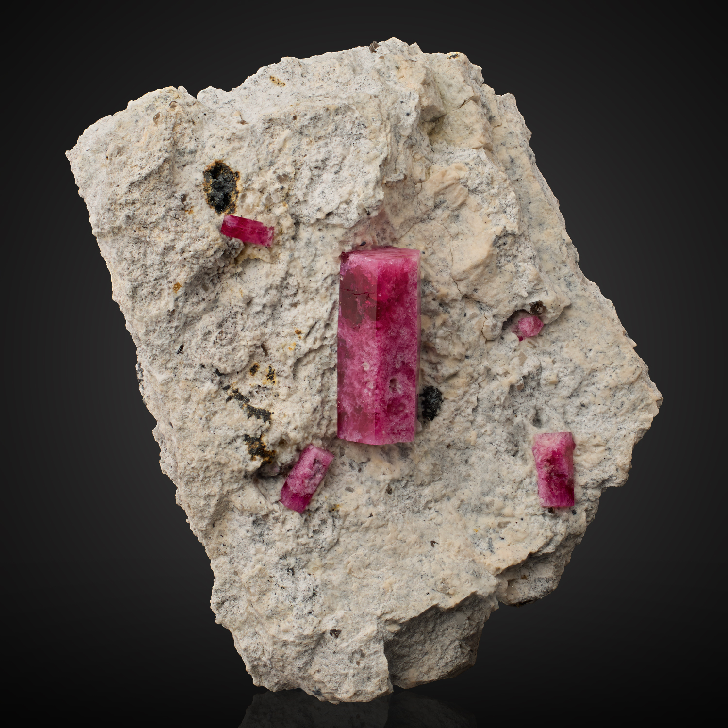 Red Beryl is amongst North America (and the world’s) rarest minerals. Coming from less than a handful of localities worldwide, red beryl is the rarest variety. This is a great matrix example, with 5 nicely spaced crystals.
